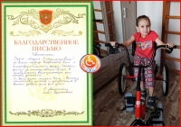 Благотворительным Фондом "ПОМОГИ ДЕТЯМ" для Насти был приобретен специализированный велосипед.