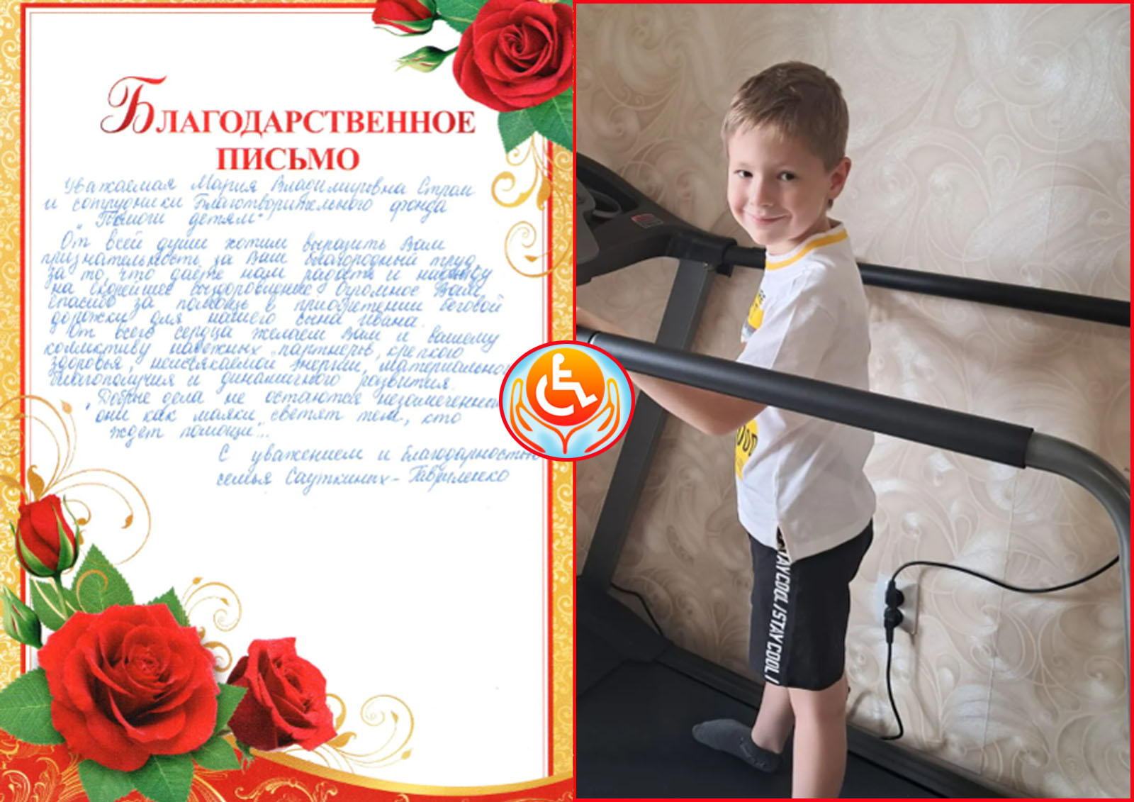 Доброе утро, дорогие друзья! Мы хотим поделиться с Вами радостной новостью! БФ"ПОМОГИ ДЕТЯМ" для нашего подопечного Ивана Сауткина была приобретена такая долгожданная и необходимая беговая дорожка, основное действие которой направлено на восстановление объема движений в нижних конечностях. Благотворительный Фонд "ПОМОГИ ДЕТЯМ" выражает искреннюю благодарность и глубокую признательность Всем за оказанное доверие и помощь! Ваш вклад неоценим! Это не просто деньги, это вклад в здоровье и качество жизни детей-инвалидов! СПАСИБО ВАМ, дорогие наши помощники, за каждый ваш вклад, за любое участие в жизни Фонда, за огромное количество отзывчивых и добрых сердец, окружающих нас!