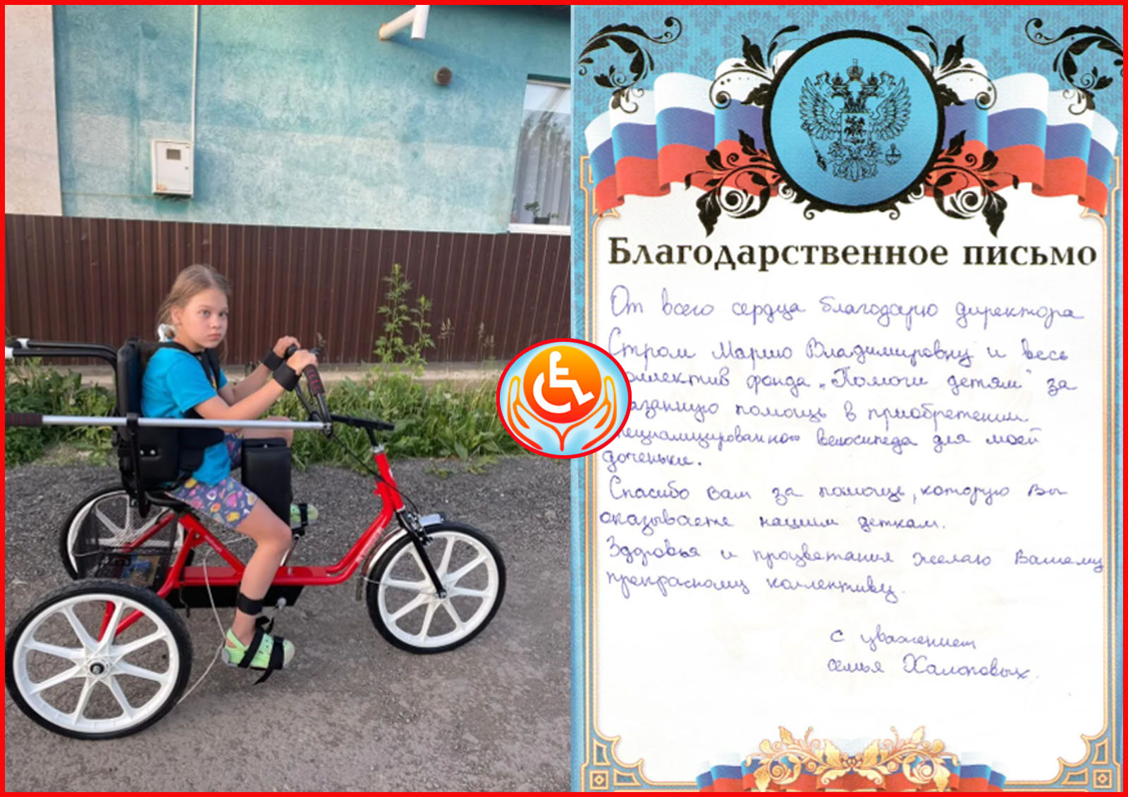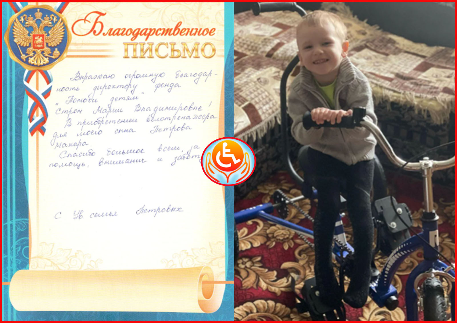 БФ "Помоги Детям" был оплачен велотренажер "Мотомед" для Стром Саши из города Оренбург