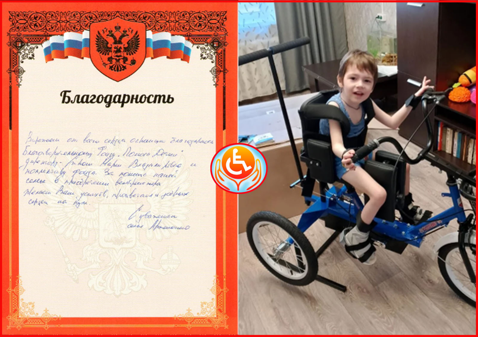Благодаря Вашей помощи и поддержке, наши добрые Друзья, мы закрыли сбор на Панина Аркаши! Аркаше куплена и доставлена очень удобная и комфортная детская инвалидная коляска "СТИНГРЕЙ" ! Спасибо всем! ВМЕСТЕ МЫ МОЖЕМ ВСЕ ! Мы спешим и дальше делать добро, присоединяйтесь! Добро Возвращается!!