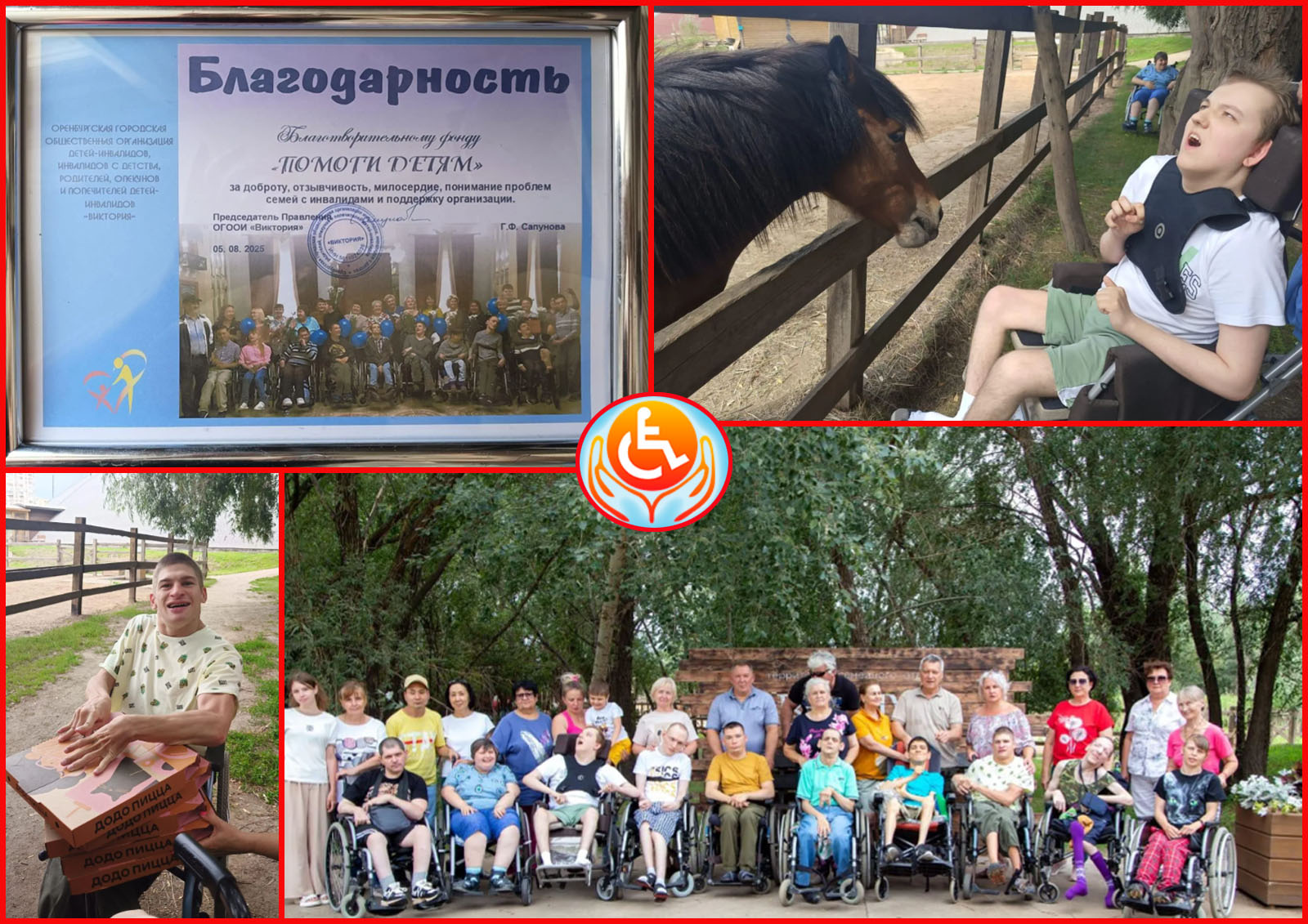 Благотворительным Фондом "ПОМОГИ ДЕТЯМ 5 августа на территории конного клуба "Воздух" был проведен благотворительный праздник который был посвящён 25 летию Оренбургской организации" Виктория" Сообщество матерей-инвалидов колясочников. На празднике собрались родители детей инвалидов колясочников, вместе со своими уже взрослыми детьми.